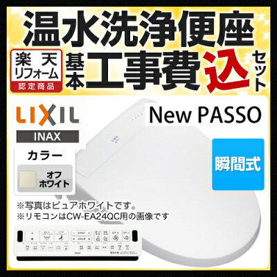 【楽天リフォーム認定商品】【工事費込セット(商品+基本工事)】[CW-EA23QB-BN8] LIXIL 温水洗浄便座 New PASSO パッソ シャワートイレ 瞬間式 フルオート便座 温風乾燥 平付・隅付タンク式便器用 フルオート便器洗浄あり オフホワイト 壁リモコン付属