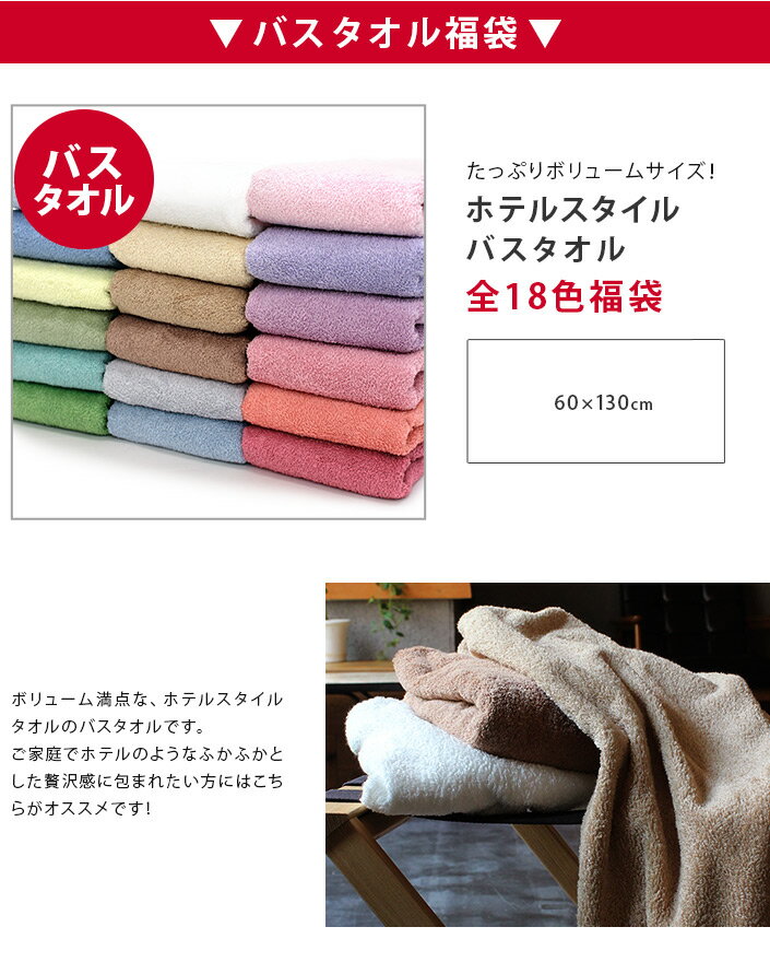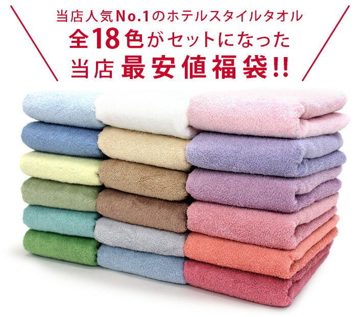 エントリーP10 SALE(送料無料)<大盛り福袋 全18色セット>日本製 ホテルスタイルタオル バスタオル / バス タオル ホテルタオル 泉州タオル 厚手 福袋 国産 ギフト まとめ買い<タイムバーゲン>