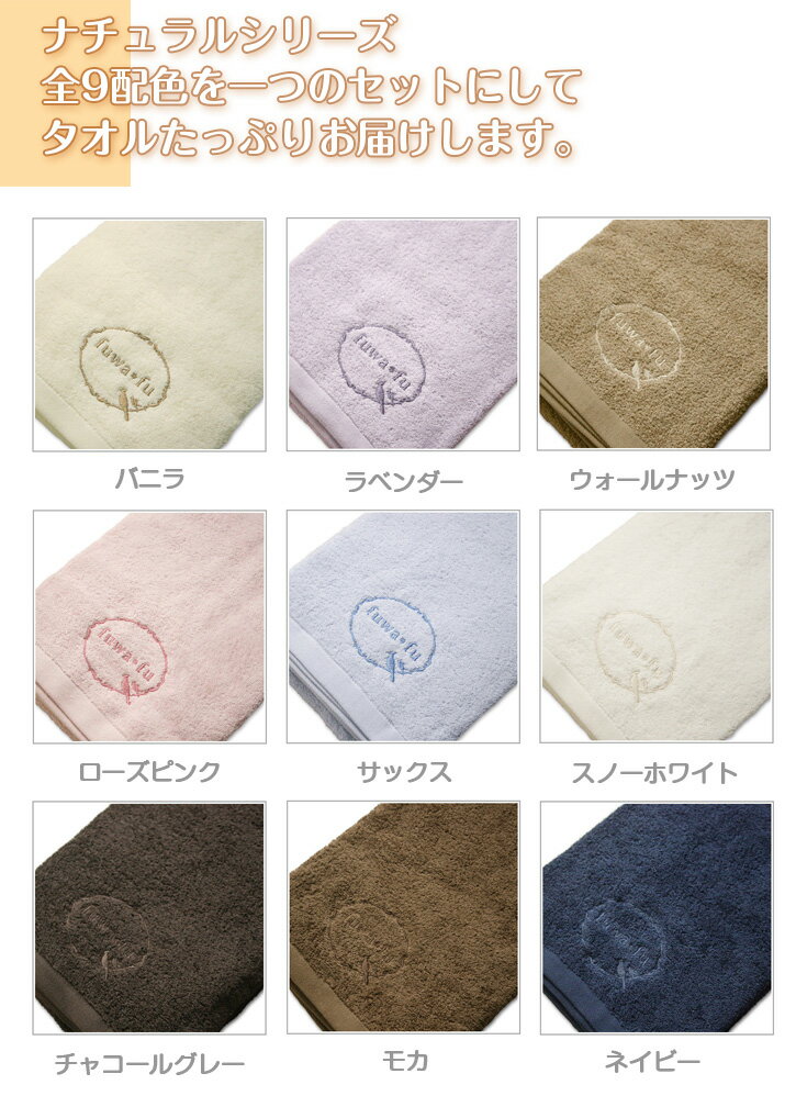 ふんわり仕上げのナチュラル バスタオル9枚セット! ゆったりサイズのナチュラルバスタオルが9枚セットになってお求めやすくなりました 1枚当たり988円!! 大判サイズをお探しの方にもおすすめです♪