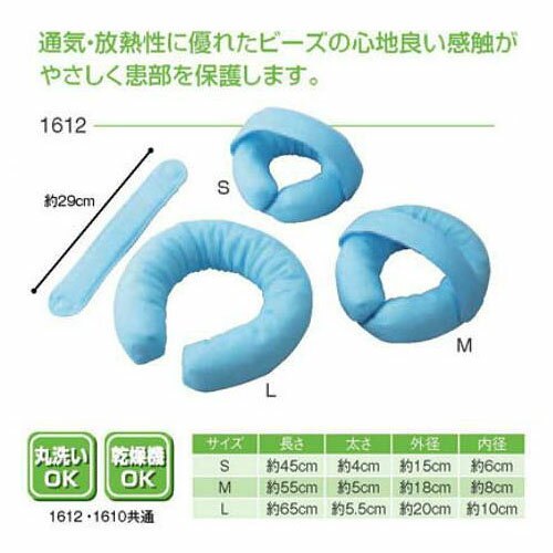●サイズ/長さ約45×太さ約4cm 外径:約15cm 内径:約6cm ベルト長さ:約29cm ●素材/側地:パイル(ポリエステル100%) 中身:熱可塑性エラストマー(通気ビーズ) ●洗濯○ ●脱水○ ●乾燥機○(80℃) ・通気・放熱性に優れたビーズの心地良い感触がやさしく患部を保護します。