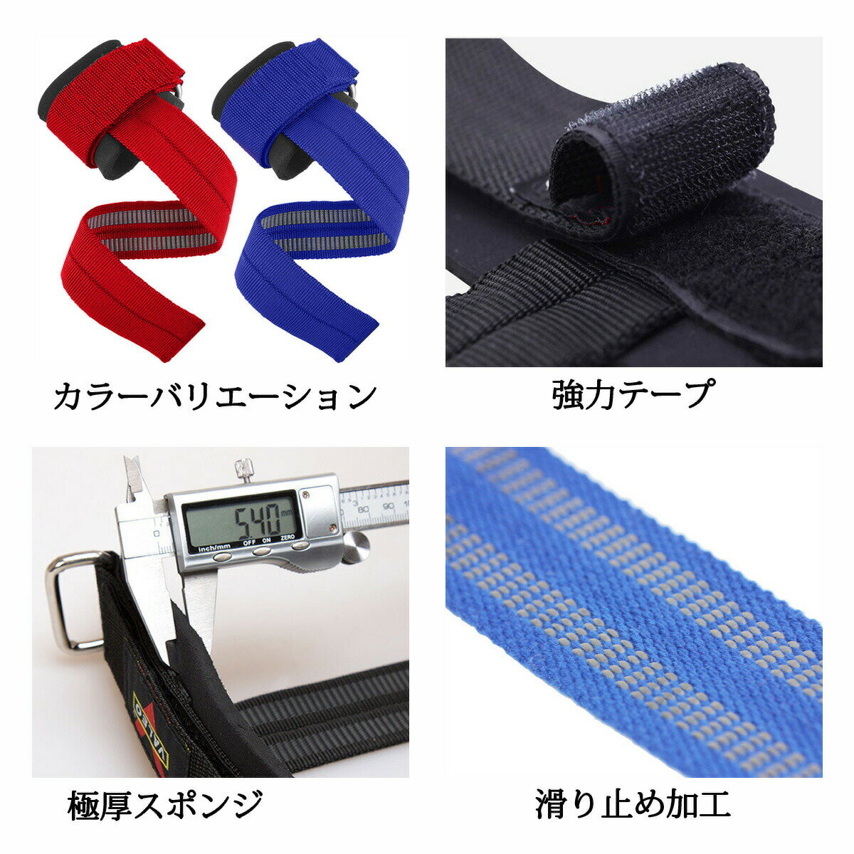 リストストラップは、ダンベルやバーベルのバー(シャフト)に巻くことで、グリップを補助、強化する役割があります。