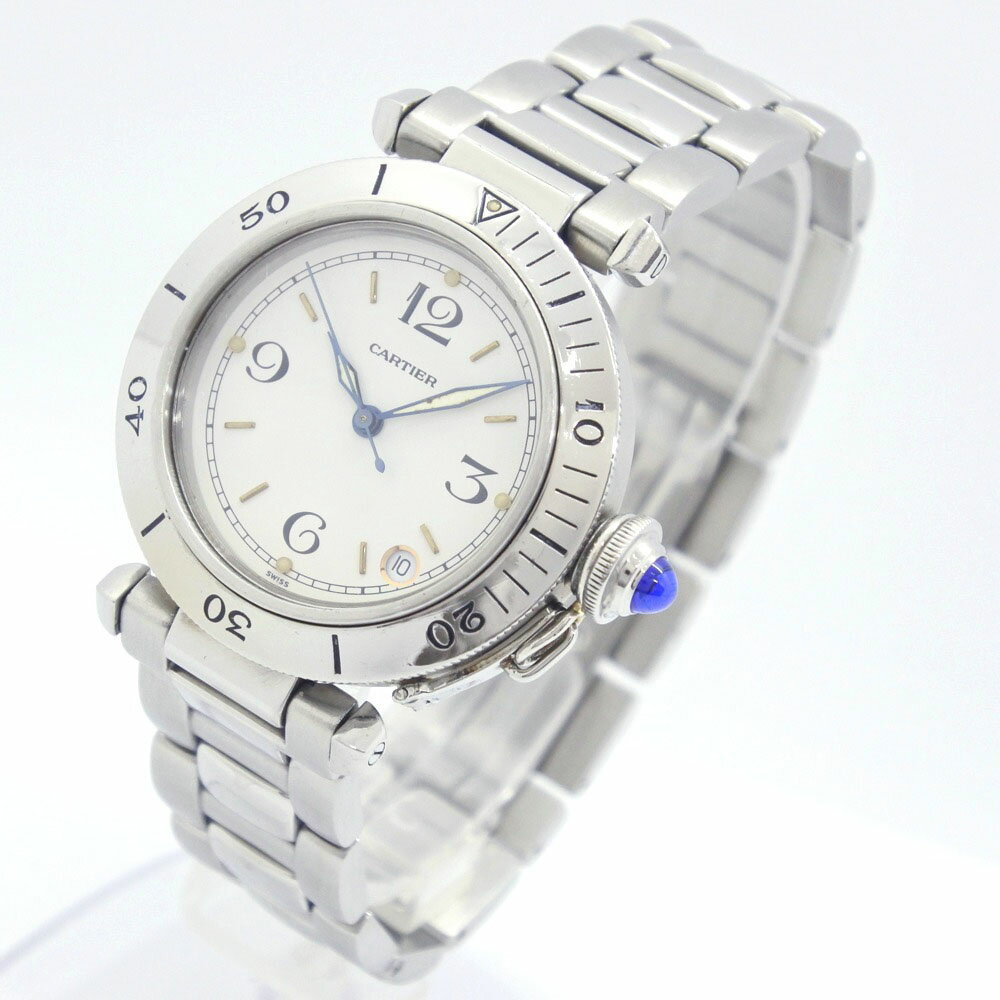 CONDITIONコンディション 本体ランク ベルトランク B+目立った汚れやダメージはない中古品 本体ケース:裏蓋部分に微細キズ 文字盤:時計の針が腐食 ベルト:小キズ >>腕時計のベルト調整について DETAIL商品詳細 管理番号62030107(cacaaebi) アイテム腕時計 ブランドCARTIER/カルティエ モデル名パシャ シリアル40104*** 素材ステンレススチール サイズ ケース:約36mm x 36mm 腕周り:約〜19.5cmバンド幅:約1.85cmケース厚み:約10mm 仕様 ムーブメント:自動巻きケース形:ラウンドフェイスカレンダータイプ:日付表示文字盤カラー:白 ライン36mm 重量109.0g 付属品なし その他画像にてわからない部分は、遠慮なくお問い合わせください。